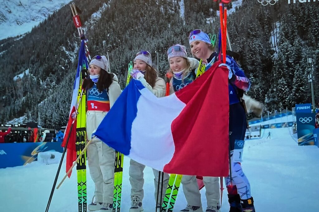 Notre Camille en OR OLYMPIQUE avec le RELAIS FEMMES de BIATHLON